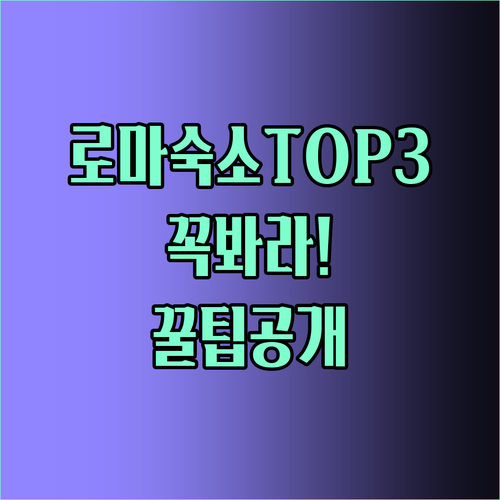 숙소명 주요 특징 및 매력 포인트 예약 링크 호텔 임페로 로마Hotel Impero Rome 편리한 위치: 테르미니역 도보 10분, 로마 관광의 중심지 접근성 우수. 꼼꼼한 청결도: 객실 위생 관리가 철저하다는 평가. 친절한 서비스: 직원의 세심한 응대와 신속한 문제 해결로 인기. 맛있는 조식: 신선한 재료의 이탈리아식/콘티넨탈 뷔페 제공 (별도 요금). 1970년 설립, 2012년 리모델링: 클래식함과 현대적 편의시설의 … 더 읽기
